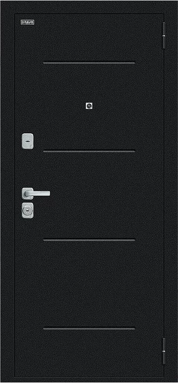 Надежная входная Дверь Браво Техно/BChrome Букле черное/Bianco Melinga премиум класса по цене 34 459 руб. Большая толщина стали защитит от проникновения в ваш дом, квартиру или коттедж. Используется очень качественная фурнитура: замки, цилиндры, ручки, защелки. Покрытие и отделка двери изготовлено под внимательным контролем производителя. Дверь имеет долгий срок службы и гарантию.