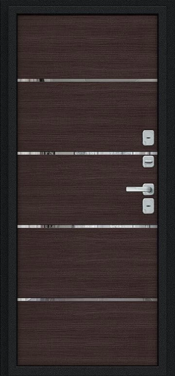 Надежная входная Дверь Браво Thermo Лайн/BChrome Букле черное/Wenge Melinga премиум класса по цене 46 659 руб. Большая толщина стали защитит от проникновения в ваш дом, квартиру или коттедж. Используется очень качественная фурнитура: замки, цилиндры, ручки, защелки. Покрытие и отделка двери изготовлено под внимательным контролем производителя. Дверь имеет долгий срок службы и гарантию.